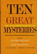 Contents: In putting this compilation together, the editors selected what they felt to be a balanced menu of ten stories: long, short and medium, which have the common denominator of being of high quality. The Maltese Falcon (Dashiell Hammett) has been called the most influential detective story of the 20th Century and has been imitated on multiple occasions, being what some people would term term one of the best performers of the American hardboiled detective story. The story has of course also been made into a film featuring Humphrey Bogart, Sydney Greenstreet, Peter Lorre as Spade, Gutman, and Joel Cairo. Quite far removed from Hammett (on the surface) is Dorothy L. Sayers, writer of 'The Learned Adventure' and creator of Lord Peter Wimsey. This particular offering reveals the author and her titled detective in one of their lighter moods and problems. Erle Stanley Gardner's 'The Case of the Crying Swallow' is one of the best, but least known adventures of the famous California lawyer-sleuth; this title is currently difficult to find on its own at an inexpensive price. 'The Witness for the Prosecution' by Agatha Christie is the story upon which the most highly praised of her plays was based (she at one point had four plays running simultaneously in London and New York in a single season). This story also became an outstanding motion picture. Ellery Queen is the product of two cousins Frederic Dannay and Manfred Lee, who wrote novels and short stories about Ellery Queen the detective from 1929 onwards. In their spare time they edited 'Ellery Queen's Mystery Magazine'. In 'The Adventure of the President's Half Disme', a now very rare and very difficult to find story, Ellery pits his wits against the Father of his Country. More information about the wonderful story from Margery Allingham: 'The Case of the Late Pig', where her famous detective Albert Campion gets an anonymous note to say that Pig Peters, his chum at Botolph's Abbey School, is dead can be found on the Margery Allingham page. Needless to say the death of Pig Peters is not quite as it seems... Daphne du Maurier is principally known for straight fiction; however 'Rebecca' is clearly a great mystery classic; and 'No Motive', the story included in this compilation, is also one of her finest and most compassionate tales and a detective story in the truest sense of the word. Rex Stout received the coveted title of "Grand Master" from the Mystery Writers of America in 1959 and "Die Like a Dog" tells what happens when a handsome canine specimen decides to adopt Nero and Archie, with unfortunate results for a callous killer. The story appeared in the rare omnibus volume Royal Flush (Viking 1965). The book contains three stories that first appeared in The American Magazine: The compilation was published at a time when the suspense story was becoming more prevalent; the one significant development [at that time] since the hardboiled novel. William Irish (also known as Cornell Woolrich) was a master of this genre at the time and 'The Dancing Detective' is one of his most representative and powerful stories. And finishing on a classic, masterful story (readers should also try 'The Daughter of Time |